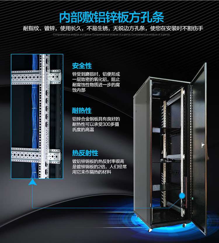 机柜都是SPCC冷轧钢材,方孔条2.0mm,安装梁1.5mm。