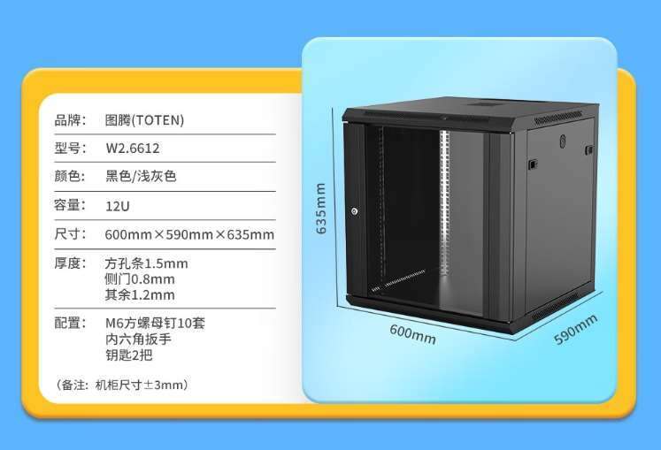 巴中市W2.6612标准机柜 12U 机柜尺寸600*600*635