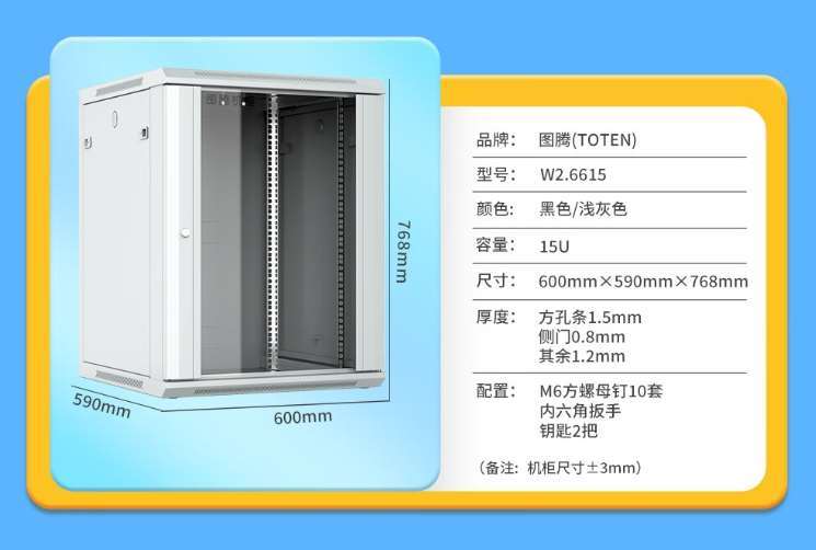 巴中市W2.6615标准机柜 15U 机柜尺寸600*600*768
