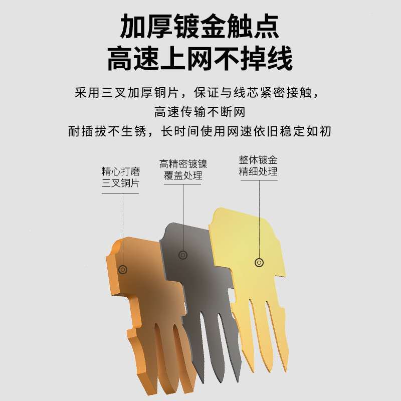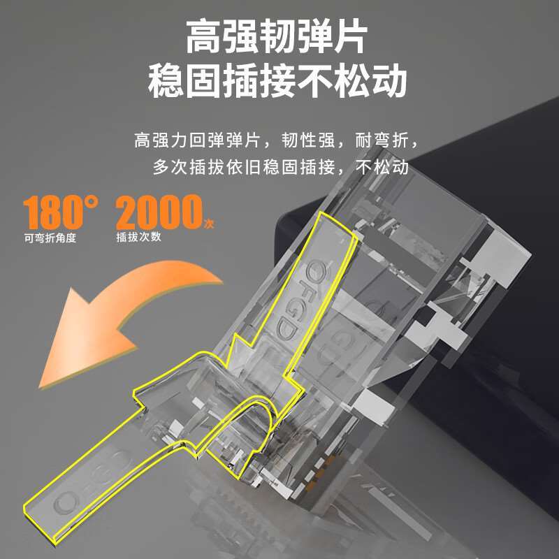 欧孚 CAT6非屏蔽多股跳线: 标准:ISO/IEC 11801, ANSI/TIA-568.2-D 原厂成型,可通过单体测试,具有更高的可靠性和传输性能(透明组装护套可定制) 插头采用灌胶工艺,弹片保护和软尾结构,保障线缆和水晶头之间的连接 导体: 24AWG多股绞合,软圆铜线(高纯度无氧铜纯度99.99%) 护套材料:PVC,护套外径:6±0.3mm(LSZH可订制) 插头规格:RJ45,8P8C,簧片表面镀金50U,透明聚碳酸酯塑胶壳 线序:T568B-T568B 插拔次数:≥750次 高级传输频率:250MHz 工作温度:-20℃~+75℃ 产品符合ROHS/REACH要求并提供第三方检验报告 产品符合ANSI/TIA-568-C.2标准的性能要求并提供第三方检验报告