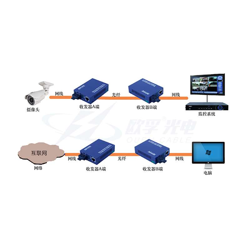 实现符合双绞线媒介(10/100BASE-TX,1000BASE-T)传输的以太网电气信号与符合光纤媒介(100BASE-FX,1000Base-SX/LX)传输的以太网光学信号之间的相互转换,利用了光纤固有的优质传输性能实现以太网信号的远程传输